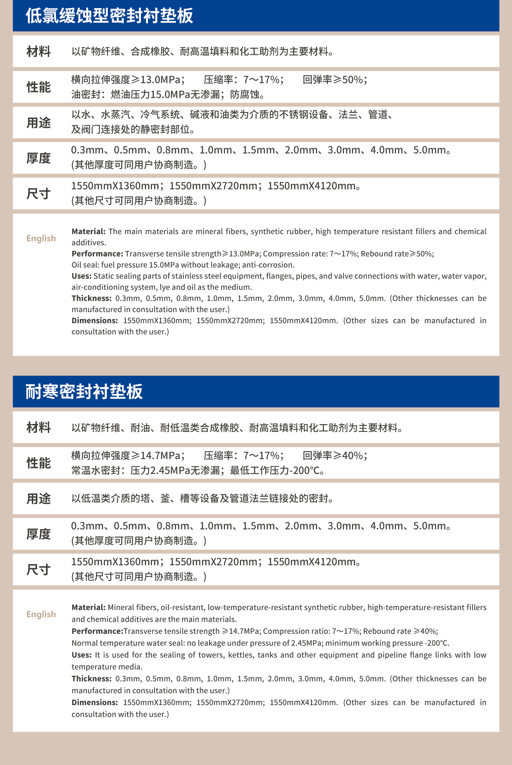 特种密封衬垫板
